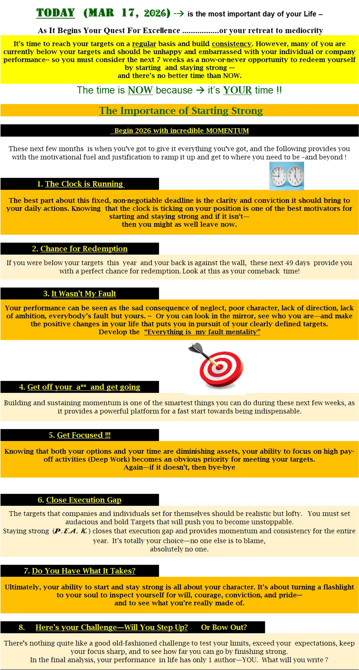 There are only 2 things in life -- you get results or you make excuses -- period !!