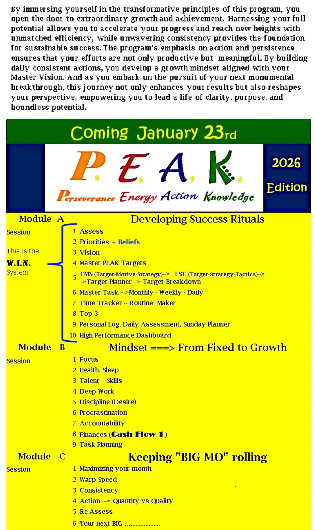 The all-new P.E.A.K. Performance System 2026 launches on January 23